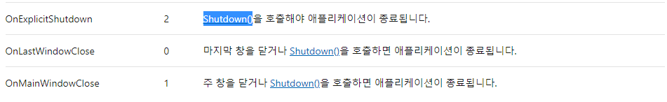 ShutdownMode의 default는 OnLastWindowClose인데 위 처럼 OnExplicitShutdown으로 바꾸어주면 Shutdown() 을 호출하기 전에는 App이 종료되지 않는다.